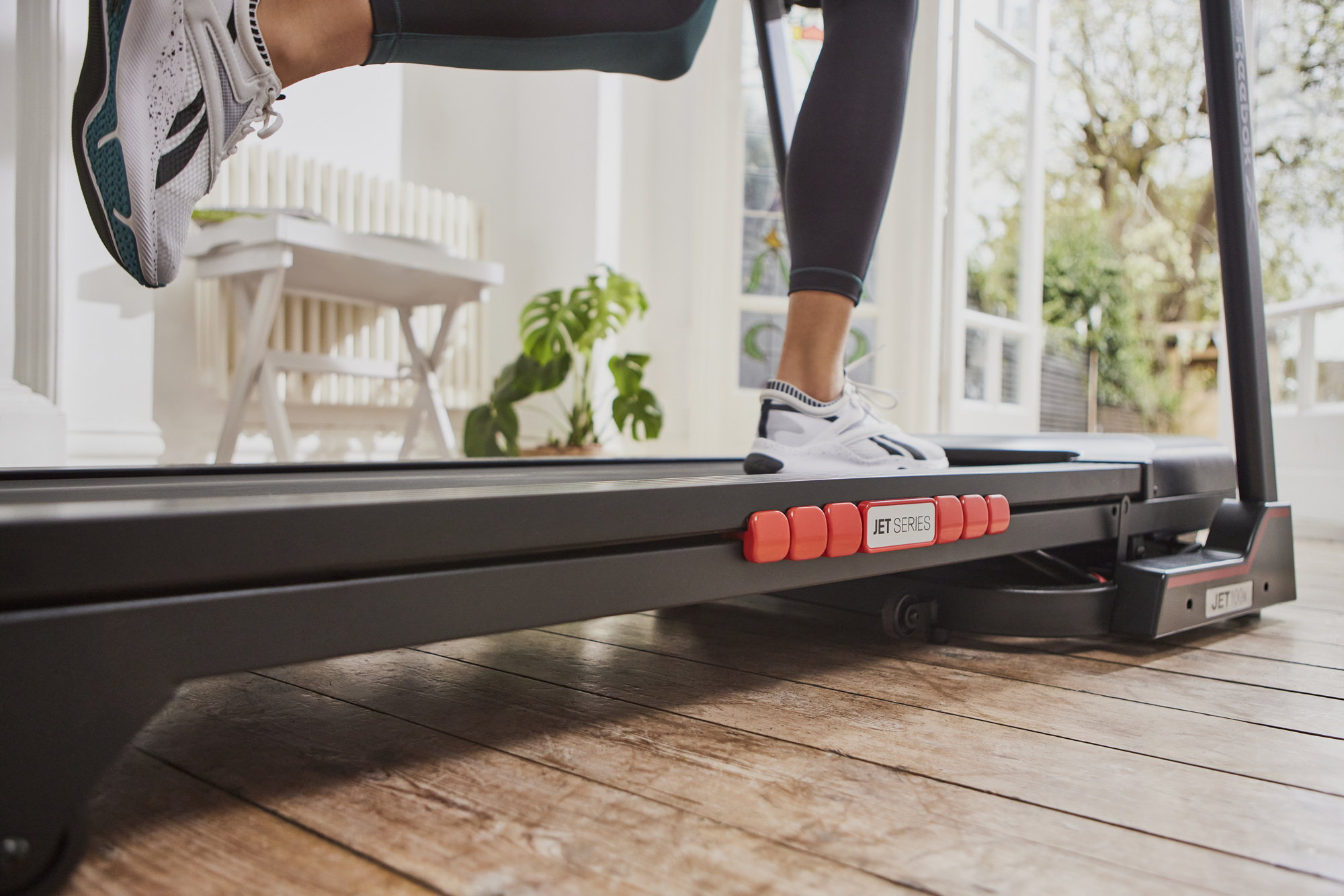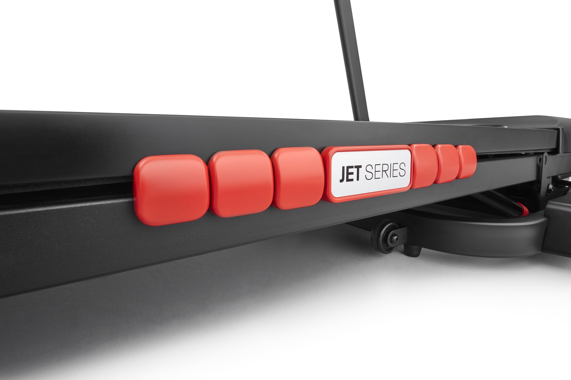 З 24 попередньо встановленими фітнес-програмами, індивідуальними і 3 цільовими програмами, Jet 100x має безліч варіантів, щоб допомогти вам зберегти мотивацію і гарантувати, що ви зможете досягти поставлених цілей у фітнесі. Вбудована консоль бігової доріжки з 5-віконним світлодіодним дисплеєм показує детальну інформацію про ваші тренування. На дисплеї можна відстежувати швидкість, час, відстань, калорії, кроки і рівень нахилу, а також частоту пульсу в реальному часі за допомогою вбудованих датчиків.