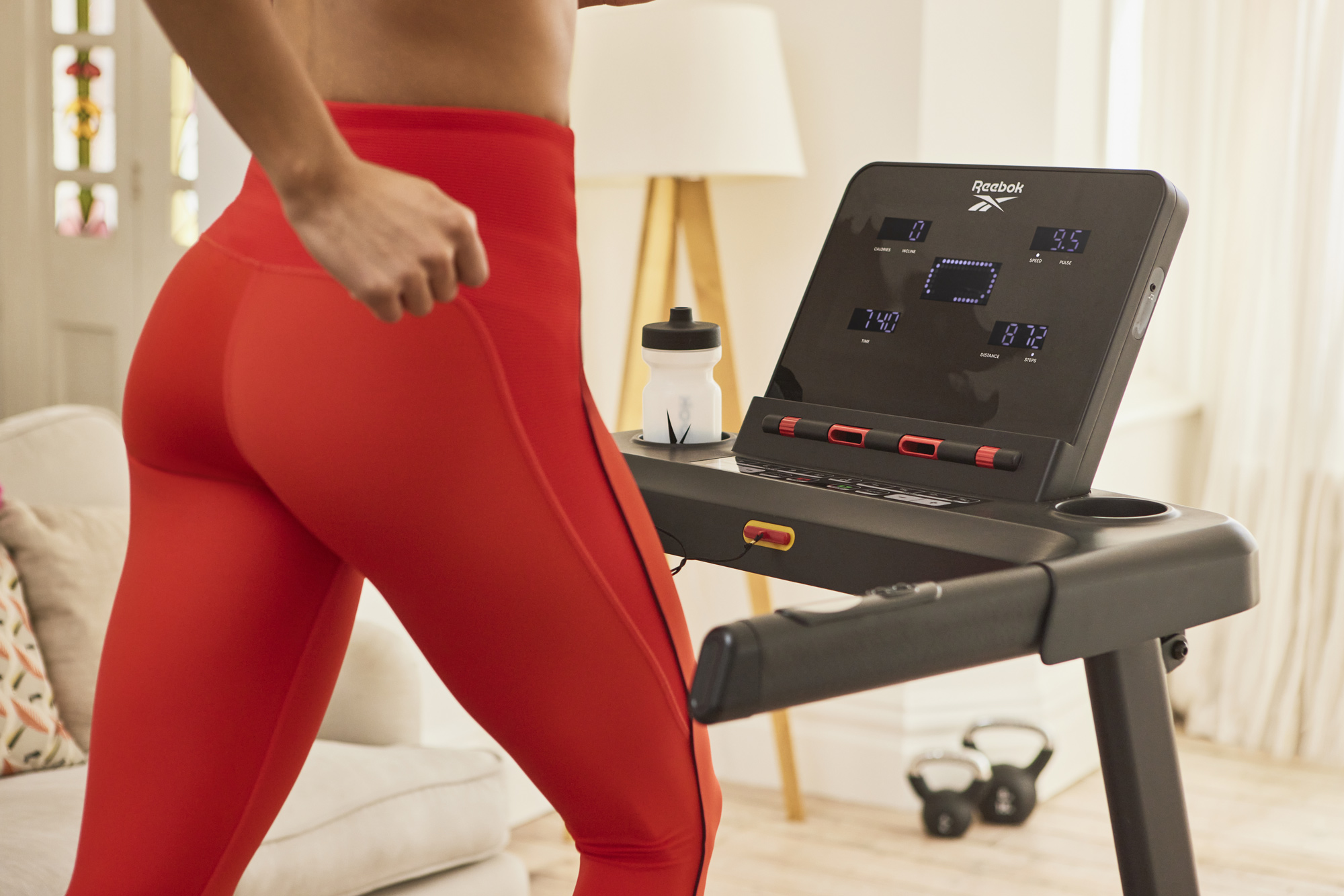Вбудовані динаміки дозволяють приєднати смартфон, щоб ви могли зануритися в улюблені треки тренувань під час бігу. Регульований вентилятор допомагає зберігати прохолоду та імітує біг на вулиці. Уникнути зневоднення можна зі зручно розташованим тримачем для пляшки з водою. Коли ви закінчите тренування, використовуйте механізм складання Soft Drop, щоб скласти бігову доріжку і заощадити місце під час зберігання.