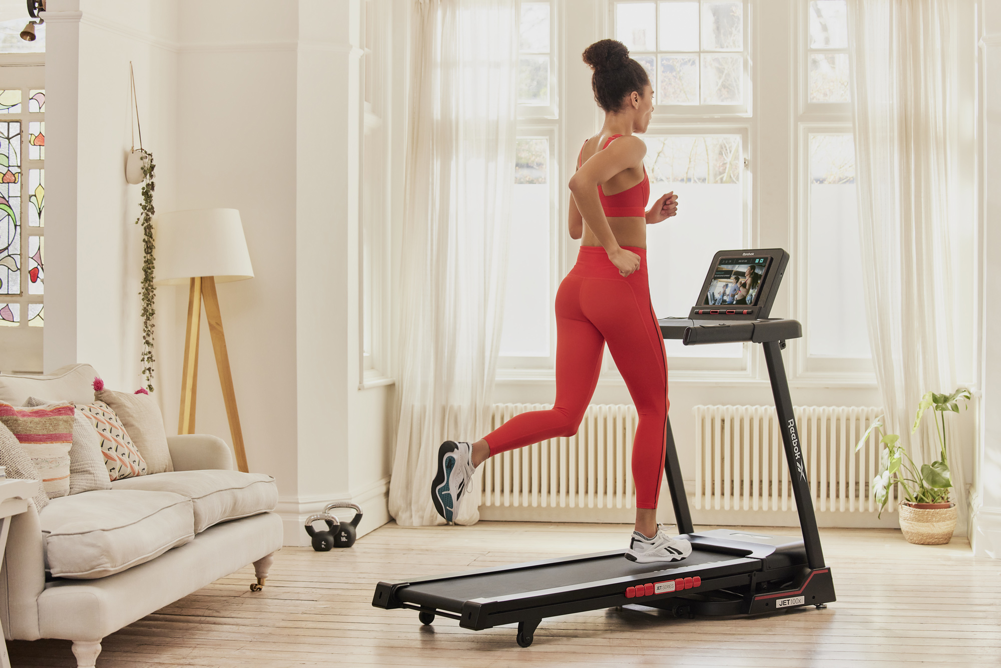Бігова доріжка Reebok JET 100x RVJF-10021 ідеально підходить для домашніх кардіотренувань завдяки двигуну потужністю 2,0 к.с., який забезпечує швидкість 1-18 км/год на 12 рівнях нахилу. Розроблений з використанням технології амортизації Air Motion, Jet 100x реагує на кожен удар ногою, передаючи повітря між амортизаційними подушками, щоб забезпечити підтримку там, де це найбільше необхідно, і привносячи комфорт і ефективність під час бігу.