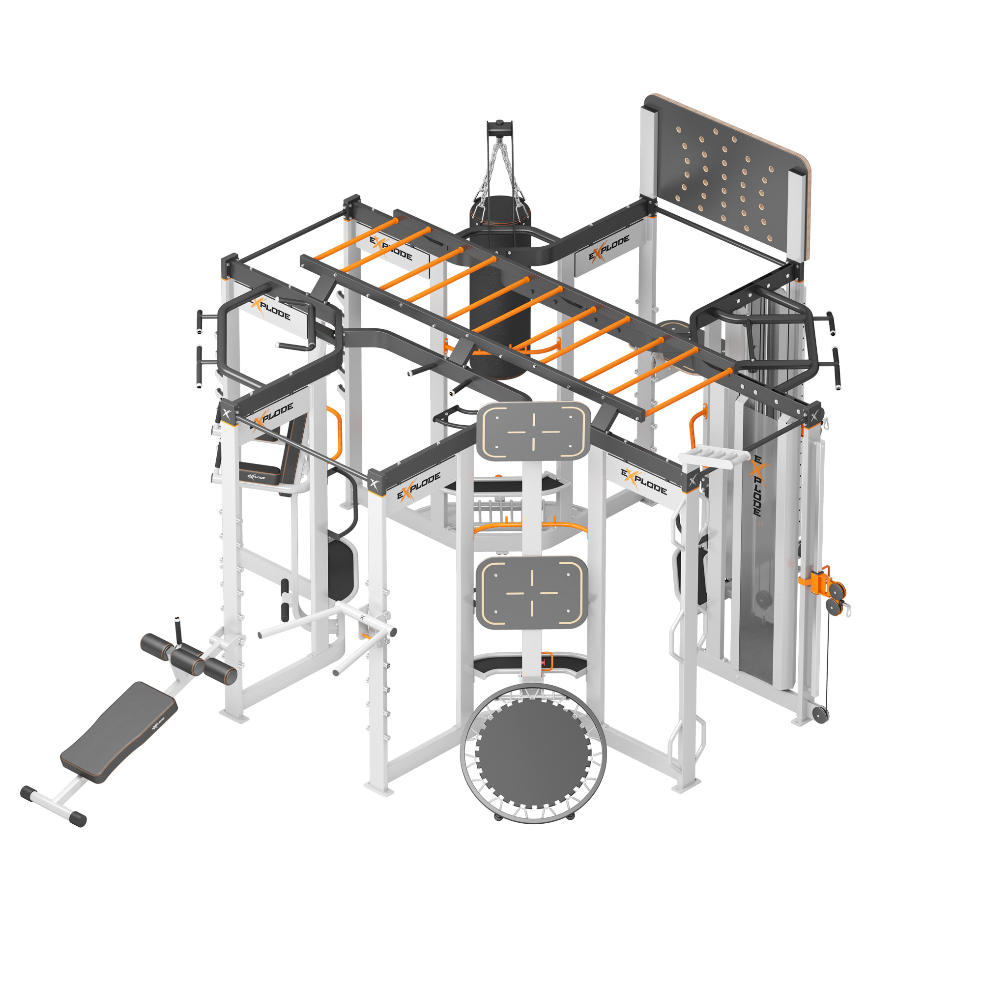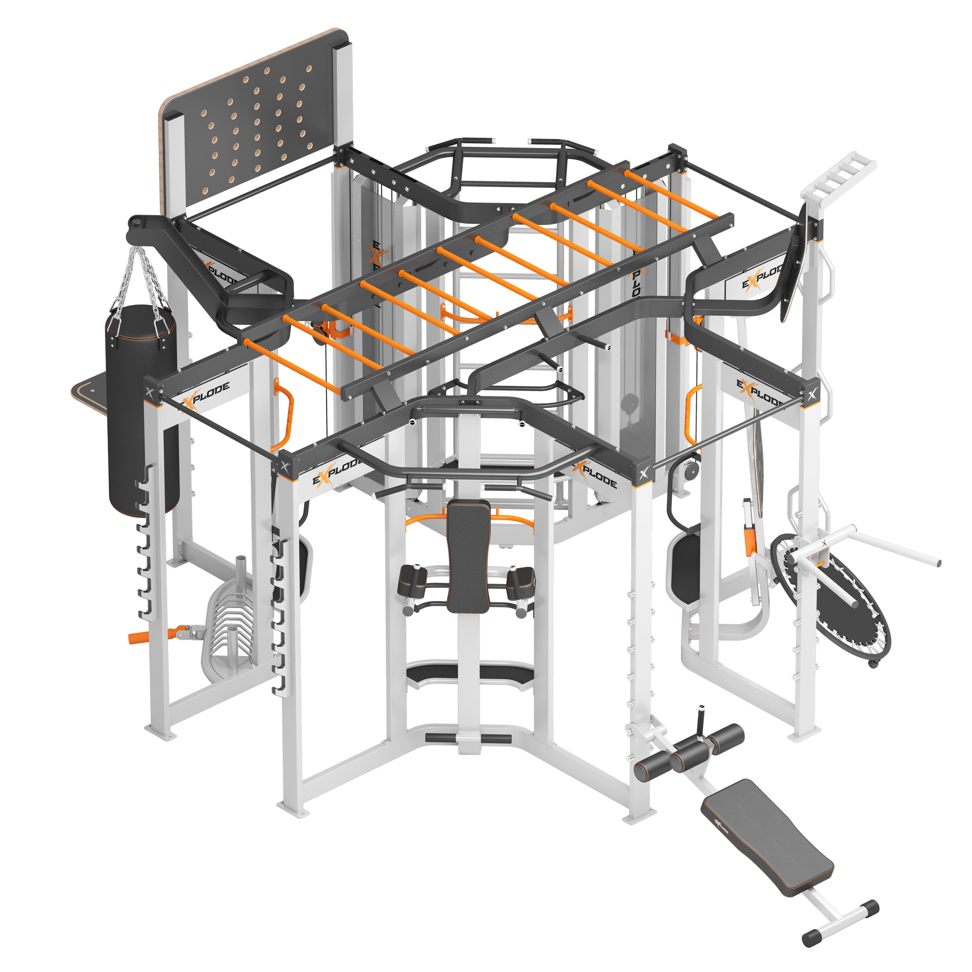 Мультистанція для функціонального тренінгу Explode KF-S5 – це комплекс, який розроблений для занять функціональним тренінгом. Станція дозволяє проводити високоефективні групові або індивідуальні тренування до 30 осіб одночасно, оскільки має 37 спортивних модулів (23 - для вправ, 14 - для обладнання).