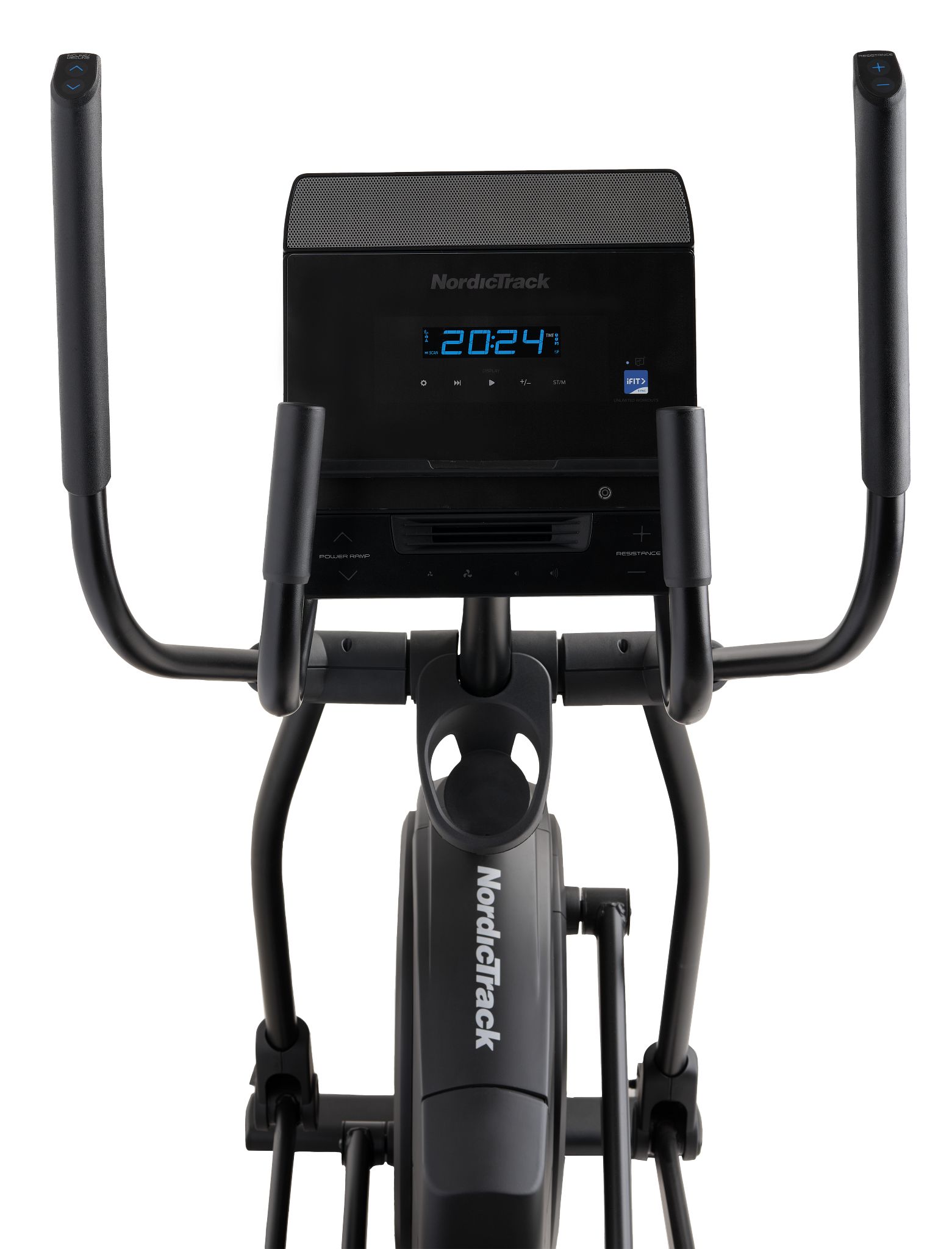 Інтелектуальна фітнес-технологія iFIT може керувати вашим еліптичним тренажером, щоб надавати персоналізовані тренування для вас незалежно від того, на якому етапі вашої фітнес-подорожі ви знаходитесь. Технологія SmartAdjust може автоматично змінювати ваші 22 рівнів опору на основі історії ваших тренувань та результатів для захоплюючого та ефективного досвіду. Кут нахилу рампи варіюється від -5% до 15%. Вбудований 5" висококонтрастний дисплей відображатиме статистику в реальному часі, включаючи швидкість, нахил рампи, відстань та кількість калорій.