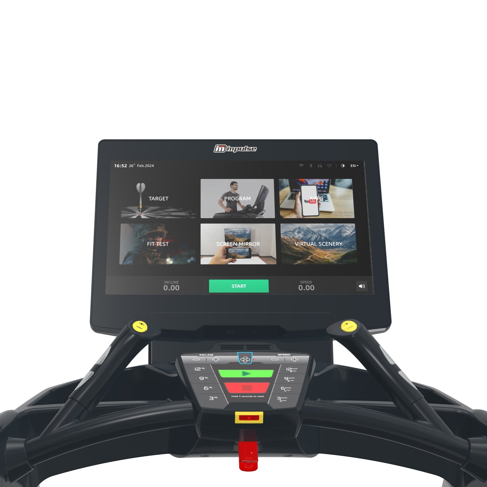 Встроенная консоль с сенсорным экраном 21,5" TFT имеет интуитивно понятный интерфейс и предоставляет полную информацию о тренировке: скорость, время, калории, дистанцию, пульс и даже процентное время, проведённое в целевых зонах пульса. Для большего комфорта предусмотрены сенсоры пульса на поручнях и возможность подключения телеметрического датчика для точного контроля сердечного ритма. Множество предустановленных программ, таких как Cardio, Interval, Fat Burn и другие, помогут разнообразить тренировки и достичь различных фитнес-целей.
