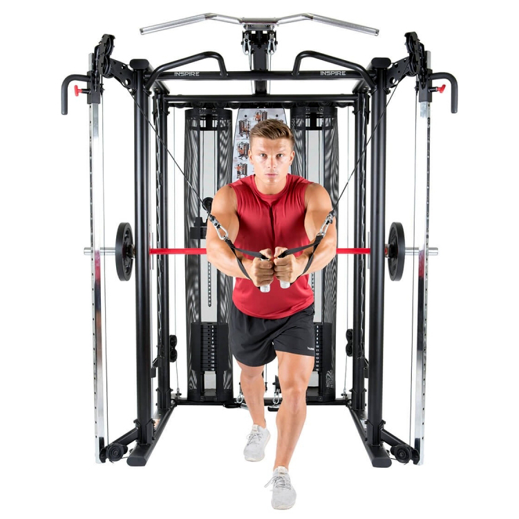 Если вы являетесь сторонником высокопрофессиональных силовых тренировок, тогда функциональный тренажер Inspire SCS – для вас. Этот уникальный тренажер соединил в себе две системы: грузоблочную и на свободных весах. Просто поражает то, сколькими функциями наделено это изобретение американских инженеров. Это и блок для тяги, и машина Смита, и тренажер для подтягиваний, и тренажер для жима, даже кроссовер. Такое изобилие обусловлено наличием встроенного грифа и турника в силовой раме.