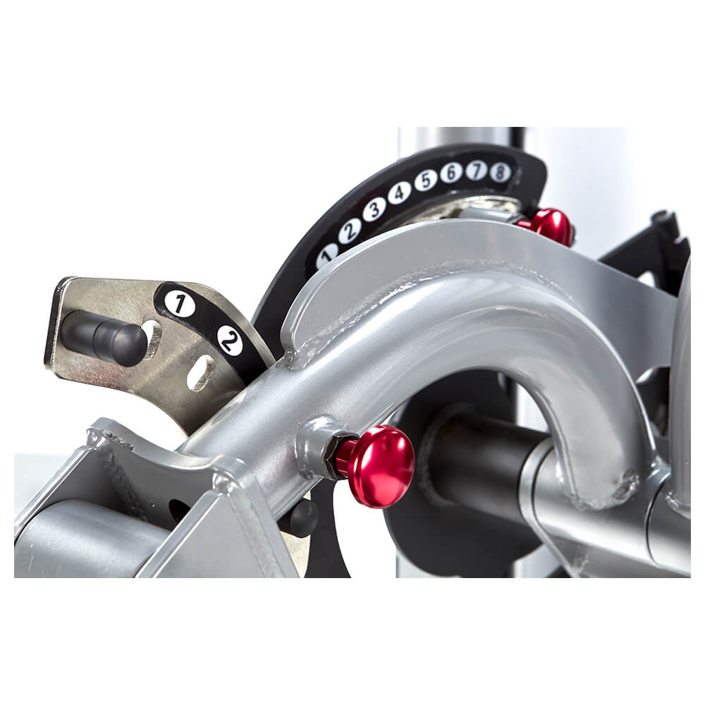 Тренажер имеет регулировку опорной подушки и регулировку угла поворота силового рычага, что дает возможность оптимально настроить тренажер.
