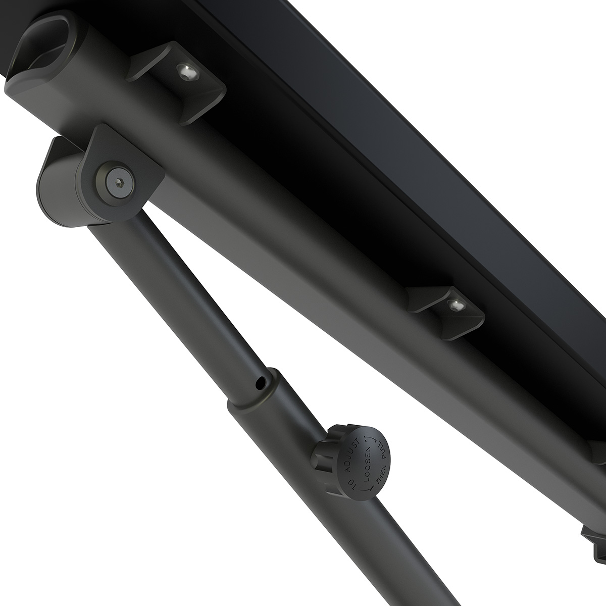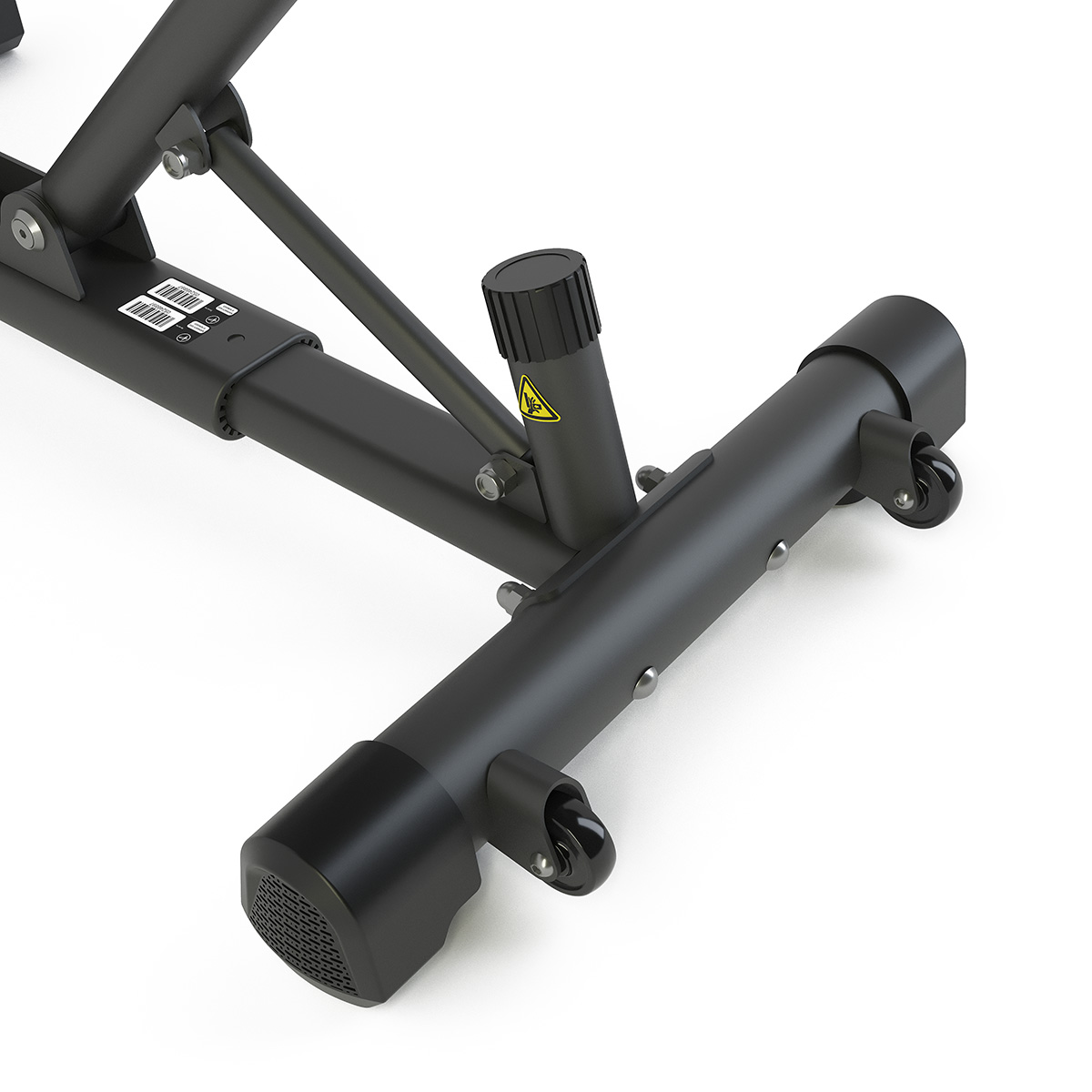 Скамья оснащена регулируемыми спинкой и сиденьем, позволяющими выполнять широкий спектр упражнений — от горизонтального жима до упражнений под углом до 85°. Система регулировки с пружинным фиксатором и хромированной трубчатой конструкцией обеспечивает надежную фиксацию выбранного положения и простоту настройки одной рукой. Все точки вращения снабжены бронзовыми втулками, что гарантирует плавность движения и долговечность механизма.