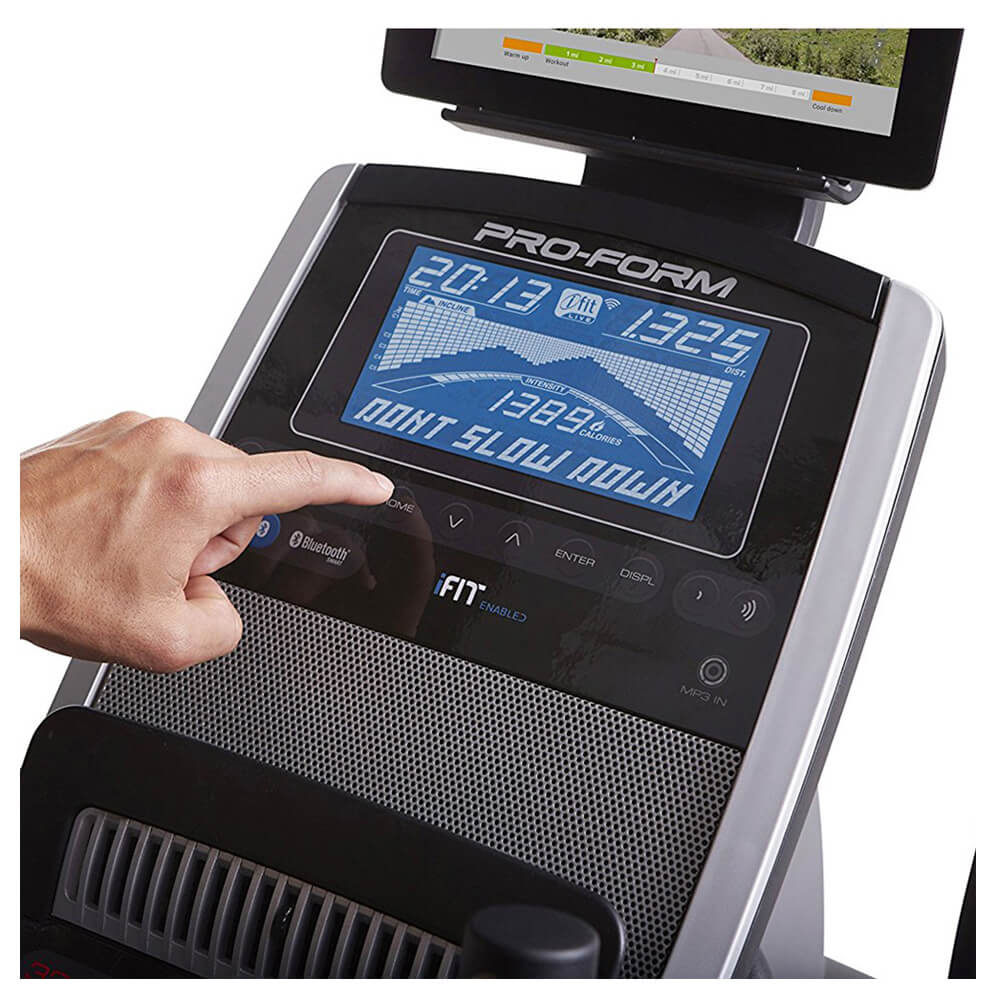 Степпер-орбитрек ProForm Cardio HIIT Trainer PFEVEL71216 - это многофункциональный тренажер гибридной конструкции. Сочетает в себе функции степпера и эллипса, что позволяет, не прерываясь, прорабатывать различные группы мышц. Благодаря центральному расположению маховика тренажер имеет более компактные размеры и более устойчив, нежели традиционные эллипсоиды. 24 уровня магнитного сопротивления дает возможность подбирать оптимальные нагрузки. Тренажер имеет 32 встроенные пользовательские программы тренировок, поддерживает on-line приложение iFit Coach Redy. Удобные ручки со встроенными датчиками пульса EKG Grip Pulse и увеличенные, амортизирующие платформы для ног делают движения плавными и эффективными. Параметры тренировок и показания датчиков отображаются на 7” дисплее с подсветкой. Двухскоростной вентилятор CoolAire™ сохраняет комфортную прохладу во время занятий. Прослушать любимые музыкальные треки можно, подключив к тренажеру iPod, а встроенный в консоль держатель для планшета позволит просматривать фильмы и видео.